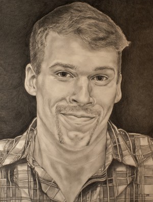 Contemporary-art trends can also be discerned in the works of these artists. Carlyn Slagel’s graphite portrait of a young man is entirely different from Whitson’s moody portrait. This man’s face is as large and revealing of his outgoing personality as an early Chuck Close portrait, and very much in line with contemporary figurative drawing. Alicia Byler is one of many contemporary artists who have rediscovered and revitalized collage. John Holmgren is the cool conceptual artist of this show.