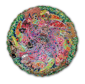 Matthew Lawrence I Went Mad Cutting My Grass Glitter, mixed media on wood 2nd Place