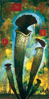 Botanical Works, an exhibit of oil and mixed media paintings by Philadelphia artist Benjamin Long, will be on display in the 2nd floor Hartman Gallery. Long depicts plants, most often predatory plants such as pitcher plants and cacti, in large scale and in the romantic style of early botanical illustrations. Long accentuates his paintings by affixing subsidiary images, on metal or wood, to the larger panels and he also embellishes some of his pieces with gold leaf and decorative images.
