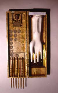 John Ground’s exhibit, entitled New Work, will focus on found object mixed media sculptures. Using his extensive collection of found objects found at yard sales and flea markets the sculptures suggest a new and different use of familiar items.